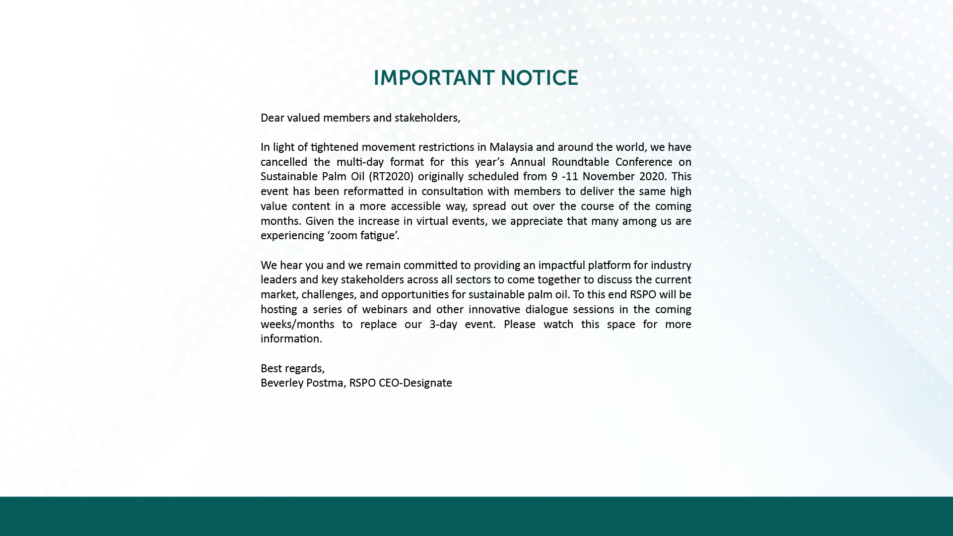 the latest developments in RSPO's standards and the supply chain: RSPO NEXT, traceability,